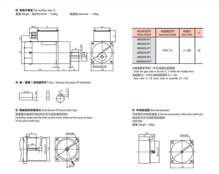 性能特點:同軸型,體積小, 效率高(≥92%) , 交流電壓單相110V單相 220V三相 220V/380V,噪音低( 50-60dB) , 功率覆蓋范圍廣( 6W-250W) , 速比覆蓋范圍廣( 3- 300) , 輸出扭矩大。