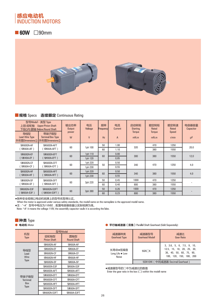 電機特性:感應電機,可逆電機,調速電機 ,剎車電機可選。