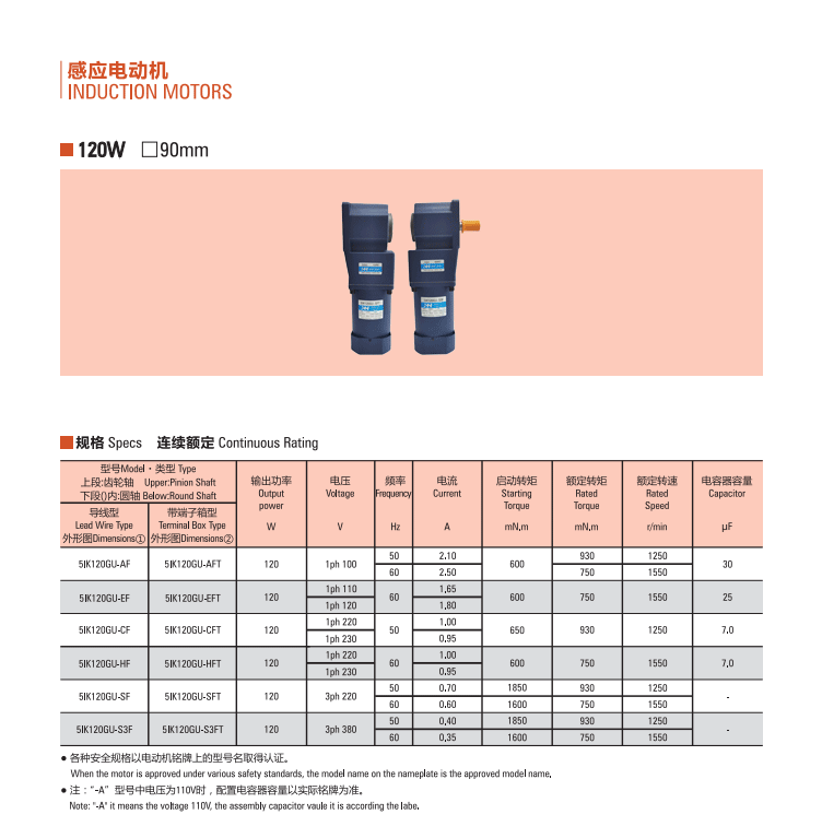 電機特性:感應電機,可逆電機,調速電機 ,剎車電機可選。