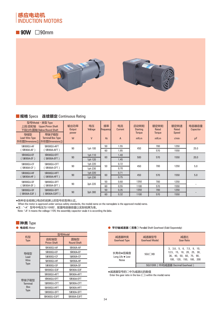 型號(hào):微型調(diào)速電機(jī)-90W