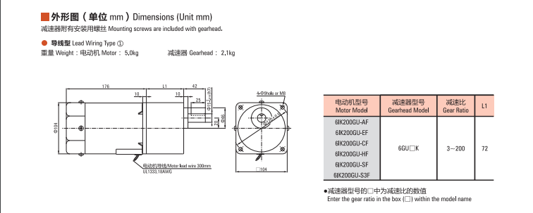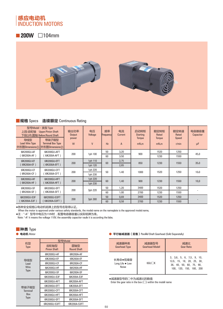 型號(hào):微型定速電機(jī)-200W